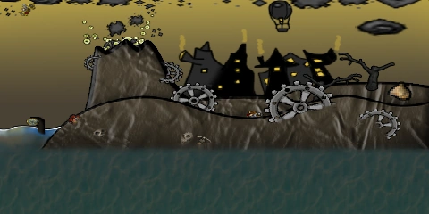 A polluted island created by a band of Cog Arcanists, which is the home of their tinkering around. The sheer pollution of the place is so unhealthy for the environment that the clouds in the sky occasionally rains acid!