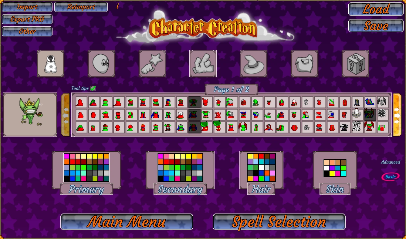 Each player's Arcanist (character) is customizable through the Character Creation Menu. You can choose from 6 types of options to customize including Body, Head, Primary Arm, Secondary Arm, Hat and Beard/Necklace. While the majority of costume pieces are unlocked, some are restricted for various reasons. Restricted costume pieces could be obtained by completing a corresponding achievement, winning tournaments that grant costume pieces as a reward, or acquiring roles in the discord. There are also some that may be restricted because they are only for use by the owner of the costume and individuals that they've given access to.